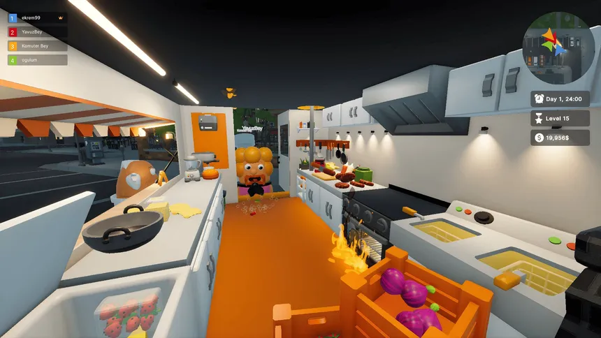 Кооперативная кулинарная игра, где маленькие ошибки быстро превращаются в хаос. Ходите за продуктами, готовьте в фудтраке и гоняйте по городу, чтобы доставлять заказы вовремя.