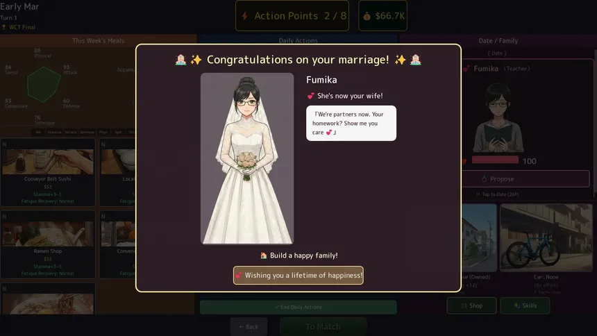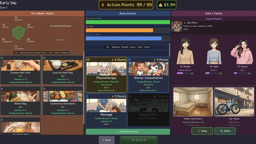 A lifestyle football RPG where you rise from the 4th division to world glory. Build a deck of 110 skill cards, romance 22 unique characters, compete across 8 countries, and pass your legacy to the next generation. Your football life begins now.