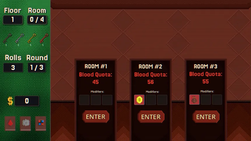 A roguelike with dice, where you are trapped in a mansion, using your dice to complete the quotas or die trying. Roll the dice, or hold the results you like. Buy and stack items or complete mini quests. Sign a blood pact for some game-changing upgrades. Will you beat fate?