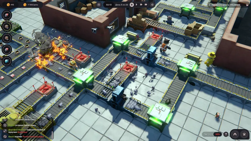Добро пожаловать на МУРЗАВОД! Автоматизируйте линии и работайте с ограниченным пространством, чтобы достичь совершенства. Соединяйте станки конвейерными линиями и минимизируйте лапковый труд! Когда мир стоит на краю гибели, ТОЛЬКО КОТЫ-РАБОТЯГИ смогут возродить производство!