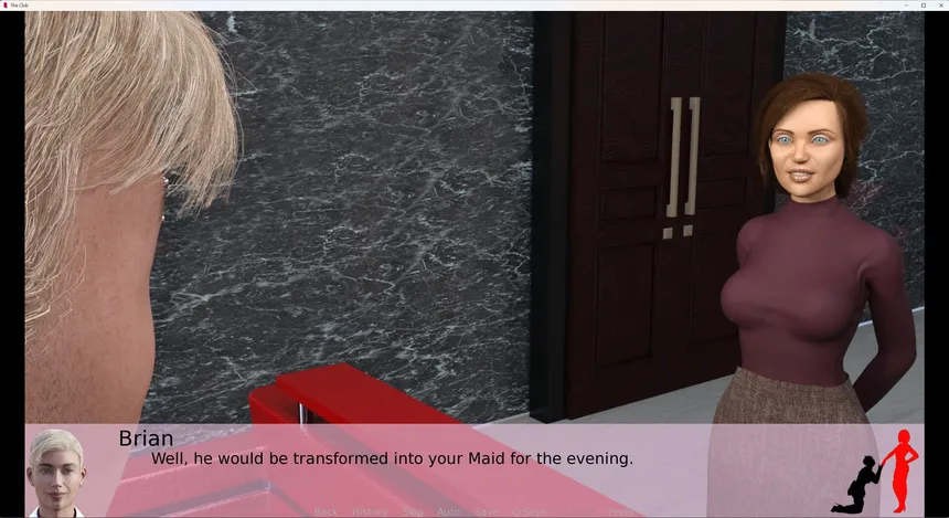 The Club is a fetish visual novel with a number of puzzles. You can play the game as either a trainee mistress or a trainee maid, each of whom visit The Club and become immersed in the wonderful world of fetishism that they find there. All characters are dressed in latex, PVC or leather.