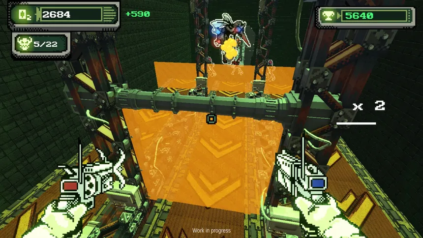 Ваш запас кислорода постепенно уменьшается. Уничтожайте врагов подряд с помощью своего оружия, которое позволяет вам динамично передвигаться, чтобы выжить и достичь своей цели в мрачном мире в стиле ретрофутуристического биопанка.