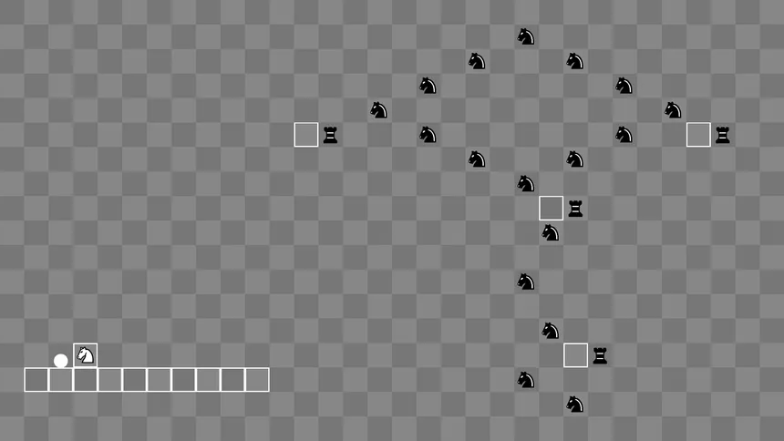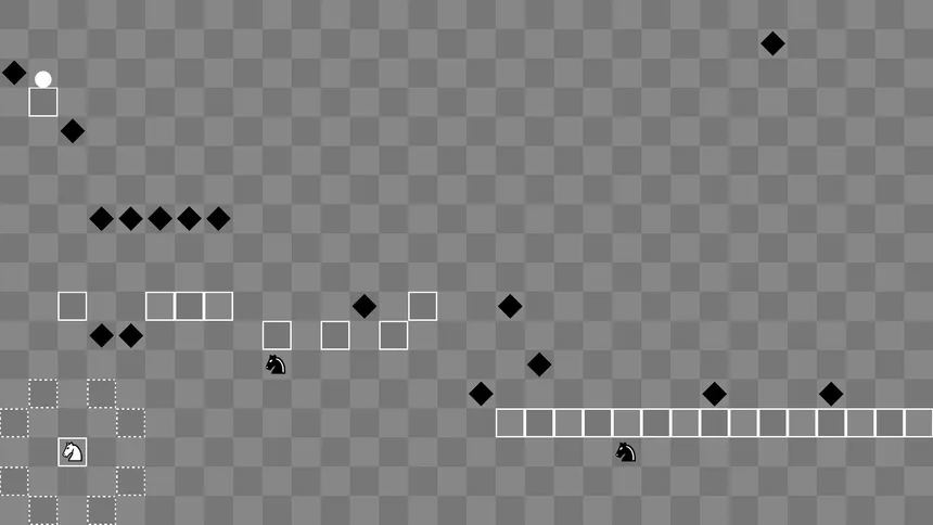 I Wanna Be With Knight is a platformer where chess pieces shape the battlefield. Ride the White Knight as a moving platform, outmaneuver the Black pieces, capture them, and fight your way through the puzzle-like levels.