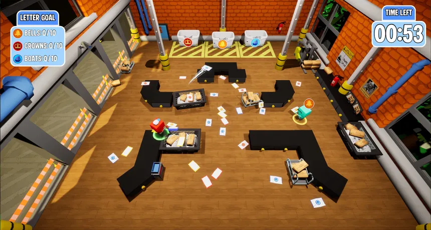 Postal Party is a chaotic multiplayer physics-based mail sorting party game for 1 to 4 players. Working together as an elite team of mail-bots scrambling to deliver parcels, dodge disasters, and somehow deliver on time.