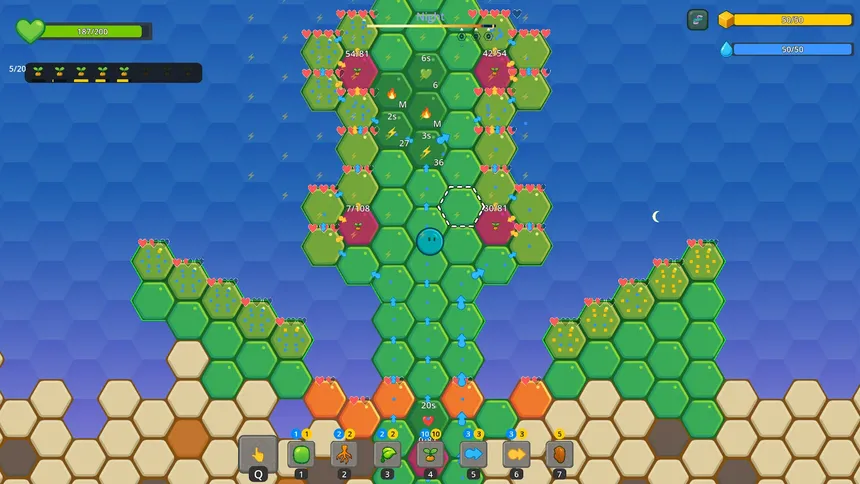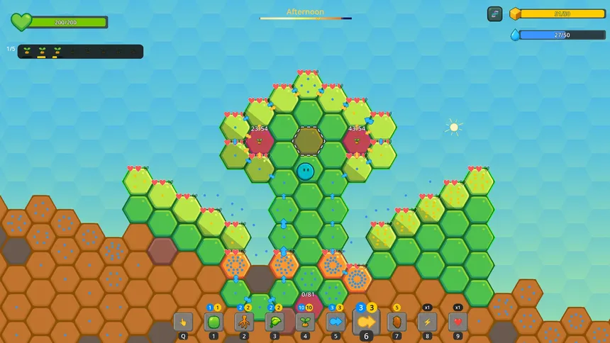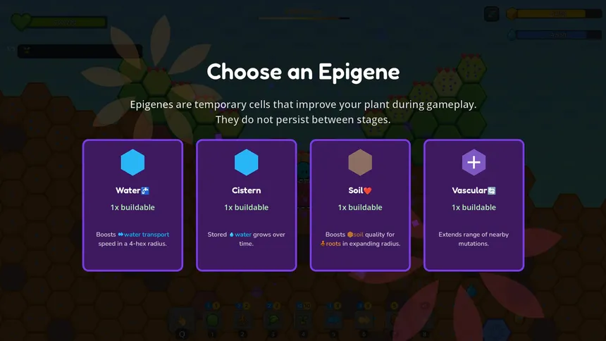 A plant-sim automation game with resource management and roguelike progression. Build transport networks, manage resource flow, unlock mutations, and stack synergies as you spread across procedurally generated biomes.