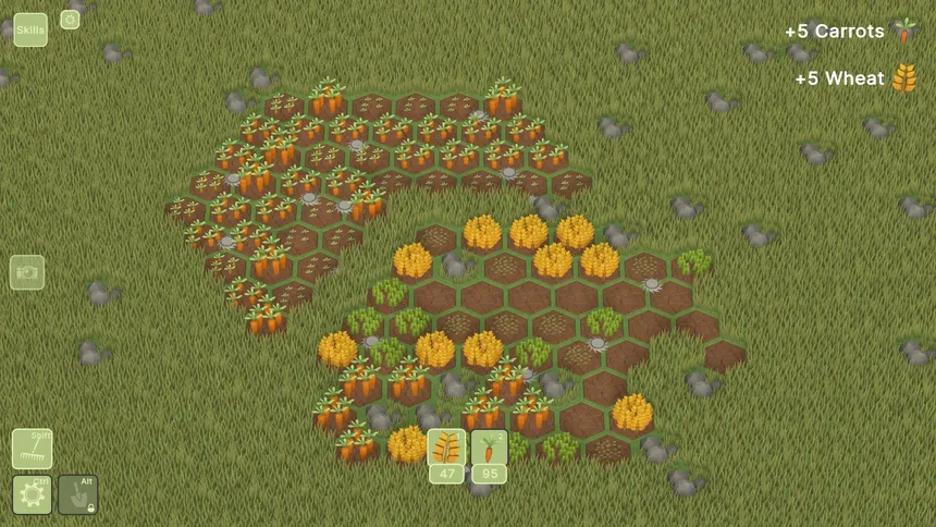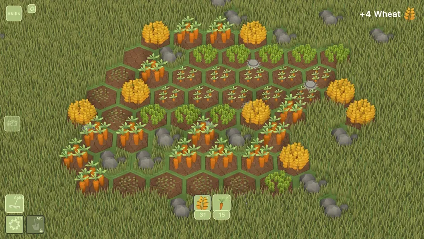 Time to Sow! is a cozy farming game where you grow crops, automate your farm with Harvesting Robots, upgrade them through a skill tree, and transform the land with Terraforms to allow the planting of exotic new crops.