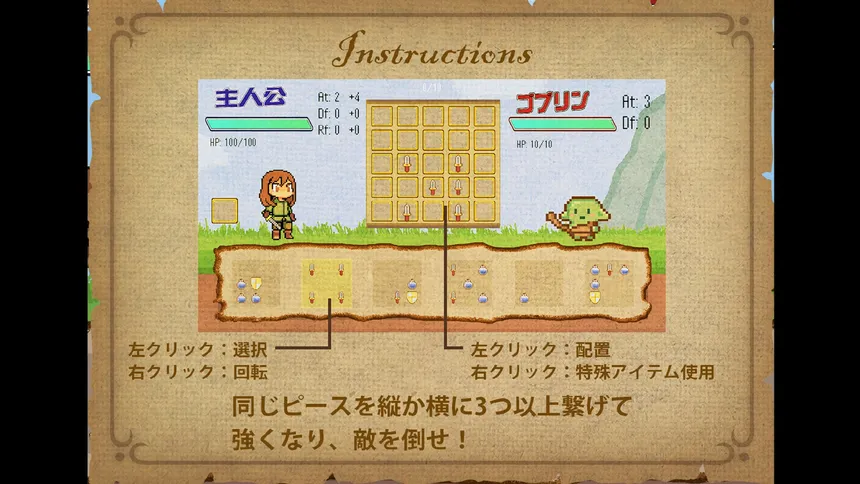 ピースを集めてレベルアップ!ドット絵と奥深いゲーム性についついハマるパズルRPG。