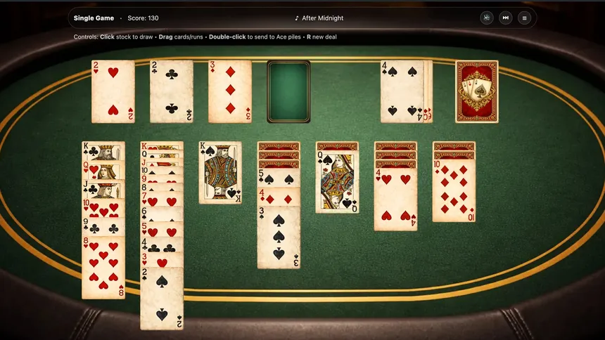Solitaire Nights is a premium, standalone solitaire card game for PC and Mac, featuring smooth gameplay, atmospheric music, competitive scoring, and a refined desktop experience—designed for focused, relaxing play without ads or interruptions.