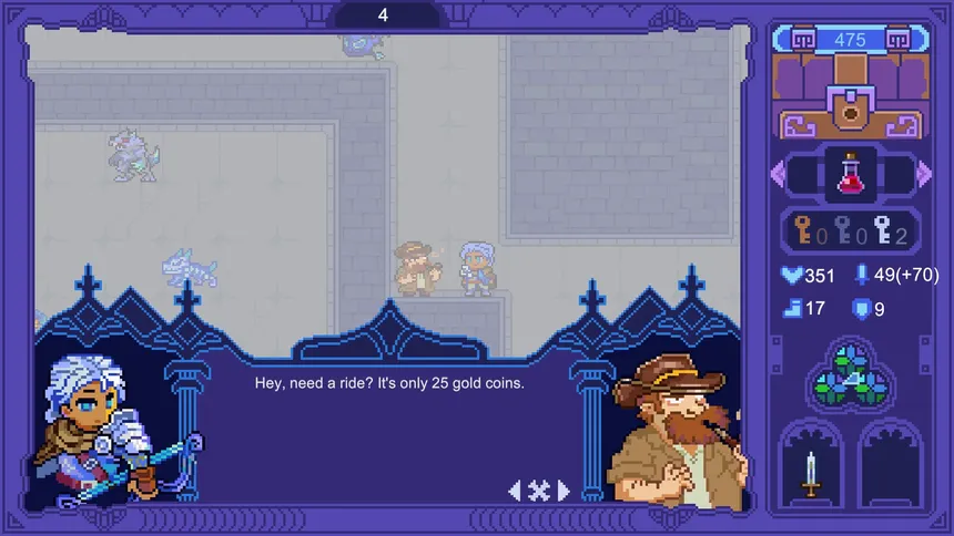 In mysterious Silvermoon Castle, brave adventurers explore levels, fight monsters, collect items/keys, level up, uncover secrets, and challenge the final boss in a strategic, thrilling fantasy adventure.