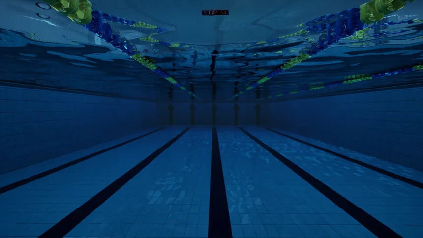 Вы оказались в бесконечно повторяющемся крытом бассейне. Пространство кажется знакомым, но в нём ощущается едва заметное несоответствие. Если вам кажется, что что-то не на своём месте, измените направление. Если ничего не выглядит иначе, продолжайте идти.