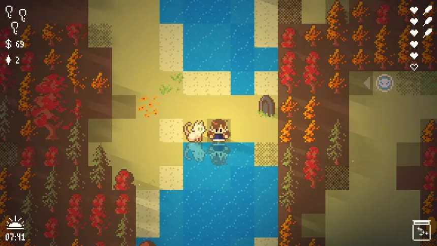 Explore a haunted forest and rescue the neighbor's cat! A grid-based exploration game where you chop your way through the woods, fight off restless spirits, solve little puzzles, and help the townsfolk. Every playthrough is different-- cut your own path and relax in a serene autumn world.