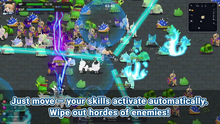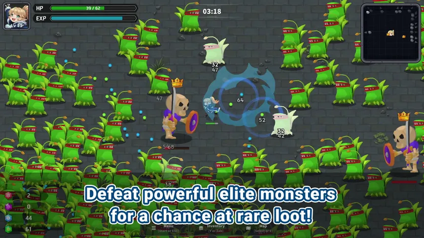 A 2D top-down roguelite blending incremental progression and treasure hunting—defeat enemies to level up, loot powerful items from chests, permanently upgrade your stats with gathered materials, collect ultra-rare Artifacts, and Prestige to push your power to limitless heights.