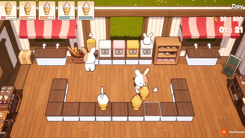 A cozy cooking game for 1–2 players (couch co-op), where you can bake, decorate, and build your very own adorable bakery.