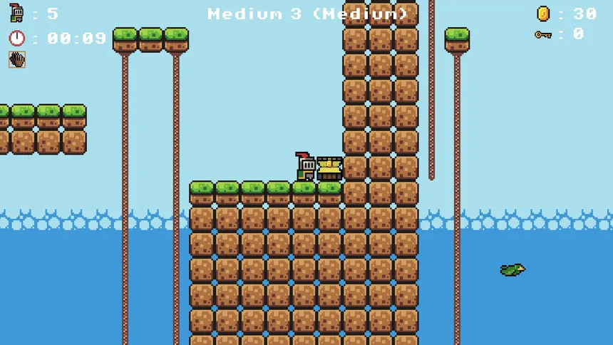 Knight Time is a retro 2D platformer that focuses on short playthroughs (10-20 minutes) with replayability through multiple paths through the game levels, various powerups, and achievements.