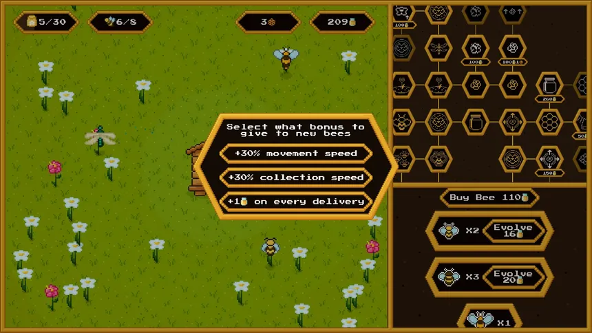 Уютная инкрементальная игра о посадке цветов, управлении пчёлами и развитии процветающего медового улья