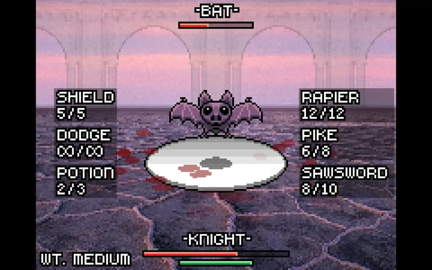Blade Knight is a first-person, dungeon crawler with a simple 2D art style, set in a colorful fantasy world. Attack and dodge your way through rooms of monsters and beasts using the weapons you find along the way. Combat is snappy and easy to learn, but becomes addicting when mastered.