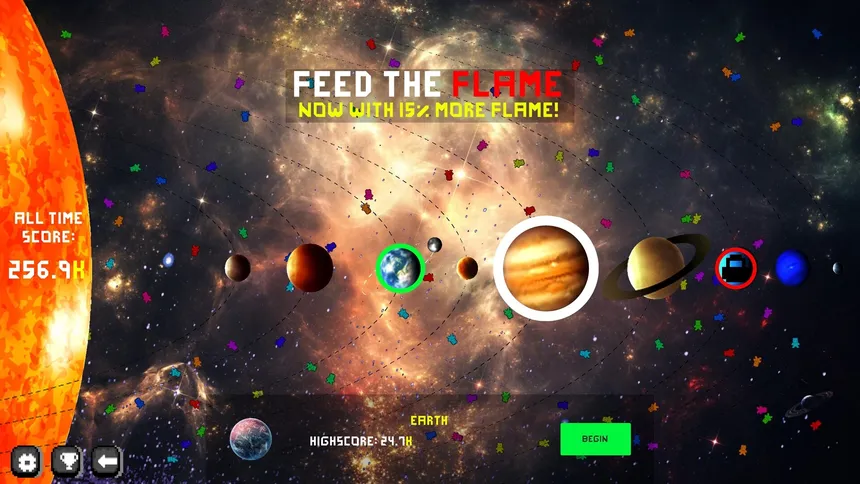 Feed The Flame is a simple incremental game where you grow a flame to burn down the world. Buy better resources, unlock upgrades and employ thousands of workers to mine, chop and hunt down fuel for the flame. Easy. Satisfying. Highly addictive.