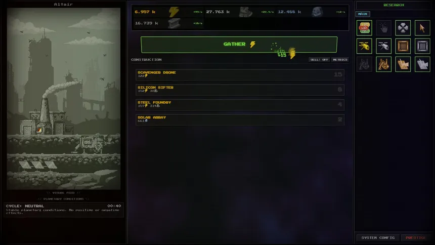 Construct colossal megastructures in this industrial, retro-futuristic idle game. Manage grid-based upgrades, explore exotic star systems, and unlock the secrets of reality through exploitation and optimization.