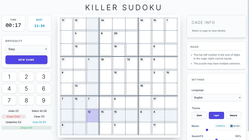 Abandon pre-made puzzle packs. Endless Killer Sudoku is a minimalist, infinite logic generator where every cage is meticulously calculated. No guessing, no 1-cell freebies—just pure, algorithmic deduction across handcrafted difficulty tiers.