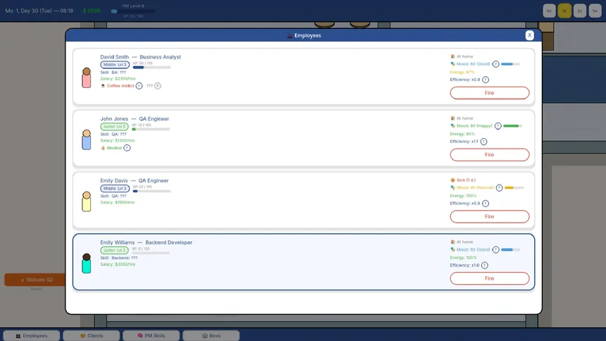 Управляйте самым непредсказуемым ресурсом - людьми! Развивайте офис, распределяйте задачи между специалистами и следите за бюджетом. Балансируйте между выгоранием команды, сложными контрактами и гневом начальства. Докажите, что вы - идеальный Project Manager.