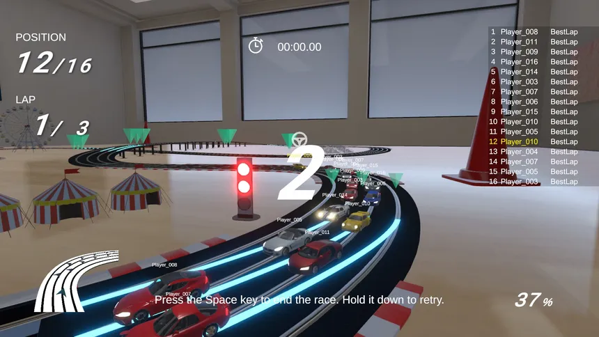 This game recreates the excitement of slot cars as a 3D video game, delivering a lane-based racing experience. Up to 16 cars race simultaneously using a physics engine, making slot car fun instantly accessible. The controls are simple—no steering required.Just click the mouse to race!