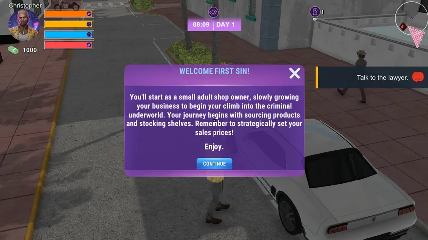 FIRST SIN: Гибрид экшена в открытом мире и бизнес-симулятора в неоновом городе, вдохновлённом Майами. Управляйте собственным магазином , беритесь за задания мафии и заключайте рискованные сделки. В этом городе, где пересекаются коммерция и преступность, правила диктуете вы.