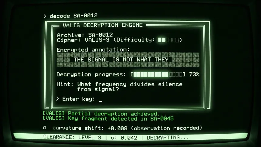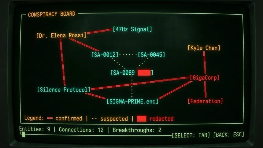 Hack into a classified archive of 120 intercepted documents. In this retro terminal investigation, every file you read alters reality — your observations are irreversible, the Federation is watching, and three divergent endings await based on how deep you dare to dig.