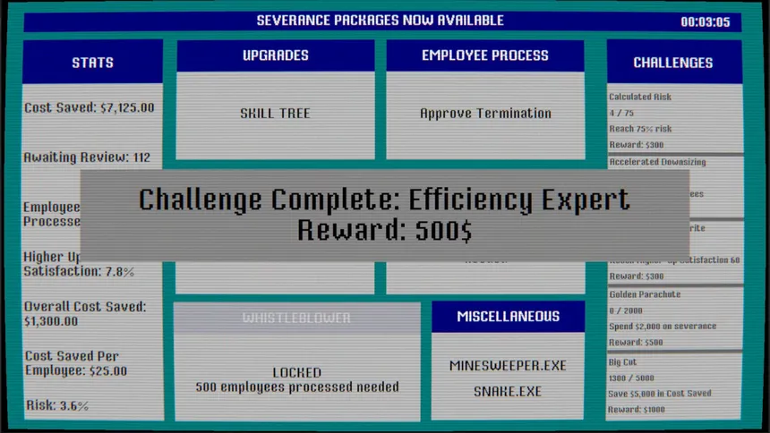 Maximize profit. Minimize humanity. In Downsizing.exe, you are a cog in the dark corporate machine. Approve terminations, automate the grind, and slash costs. How much will you sacrifice for the firm?