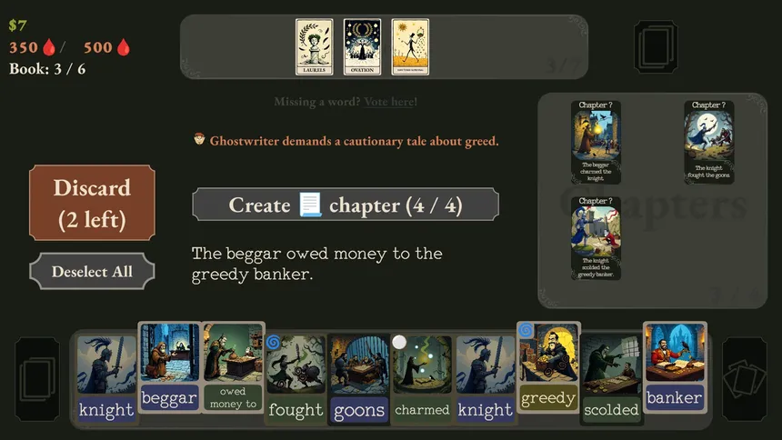 Ghostwriter's Pact — игра от компании Swah Games, разработанная для платформы PC. Проект совмещает в себе такие жанры и элементы, как карточная. Дополнительно игроки выделяют такие особенности игры, как словесная, стратегия, рогалик и искусственный интеллект. Игра рассчитана на одиночное прохождение, многопользовательские режимы не предусмотрены.