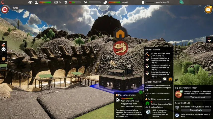 The Archaeologists is a single-player settlement builder. Establish multiple settlements through manufacturing and trade. Raise great structures across the mountain to link them into one interconnected economy. Dig into the rock to unearth valuable artifacts and uncover a forgotten past.