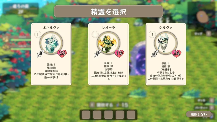 Party building × deckbuilding × auto battle. Collect spirits, choose your cards, and brave the depths of a dark forest dungeon in this roguelike RPG.