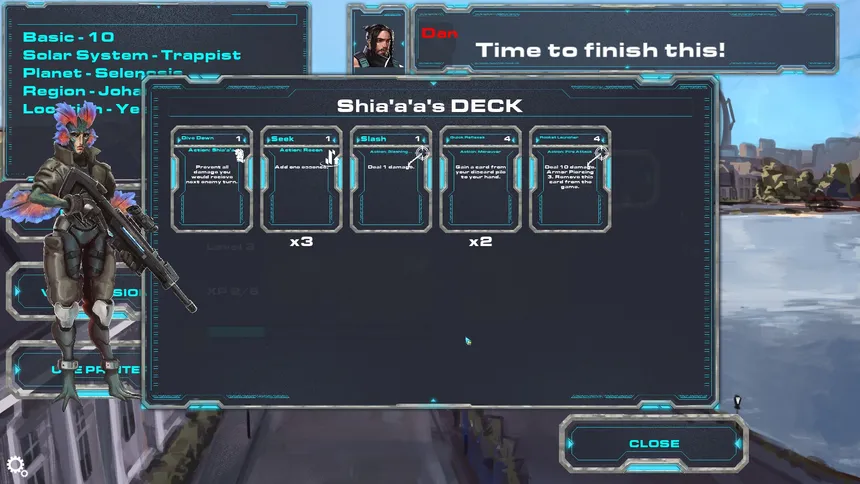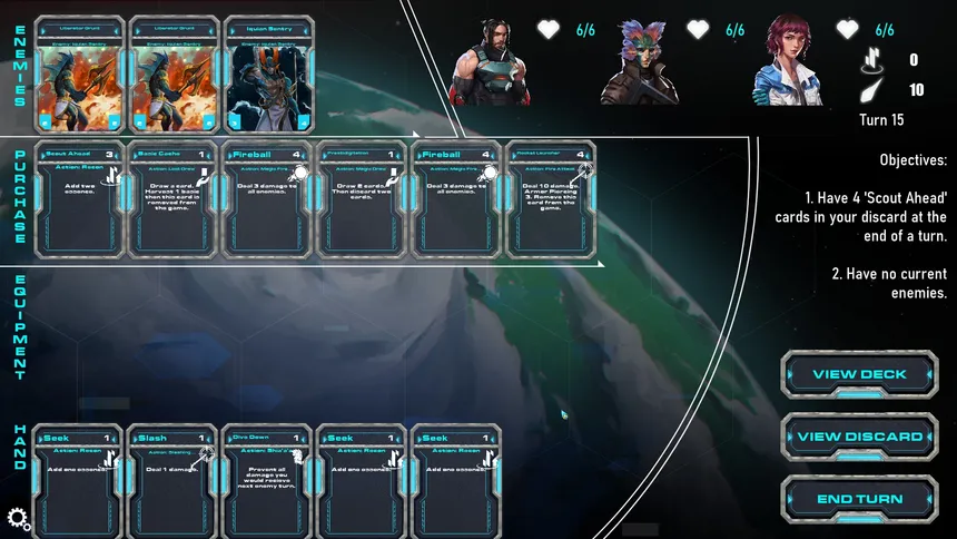 A playable story about soldiers trapped on an enemy planet and their journey home. This Sci-Fi RPG uses card-based combat as you help guide the characters home.