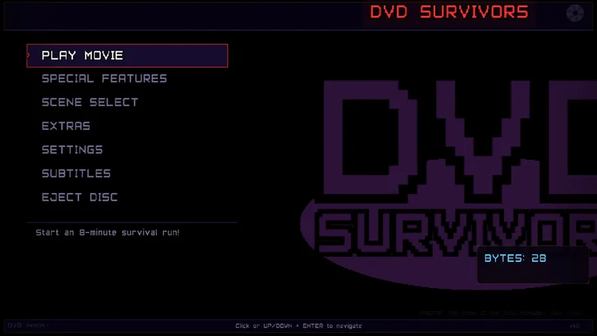 DVD Survivors — игра от компании Signal Spike Games, разработанная для платформы PC. Проект совмещает в себе такие жанры и элементы, как экшен и аркада. Дополнительно игроки выделяют такие особенности игры, как экшен, аркада, рогалик и пулевой ад. Игра рассчитана на одиночное прохождение, многопользовательские режимы не предусмотрены.