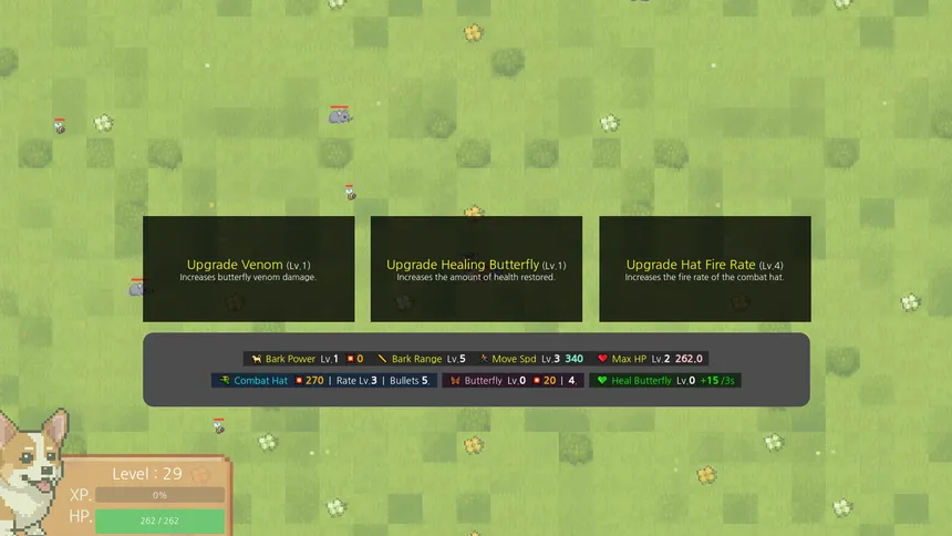 Cute dogs. Brutal survival. In this fast-paced roguelite survival game, you’ll fight off relentless waves of insects and wild animals. With simple controls and deep upgrade choices, every run feels different. Survive all the way to Level 50, where the ultimate boss awaits!