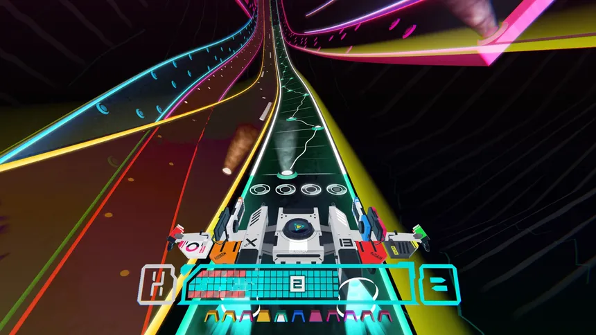 3D multi-track rhythm action with space-time bending mechanics that reward your style as much as your precision. Hit notes and switch tracks to add instruments to the mix. Become a remix machine, enter the flow state and uniquely approach each song of a highly replayable, genre-defying soundtrack.