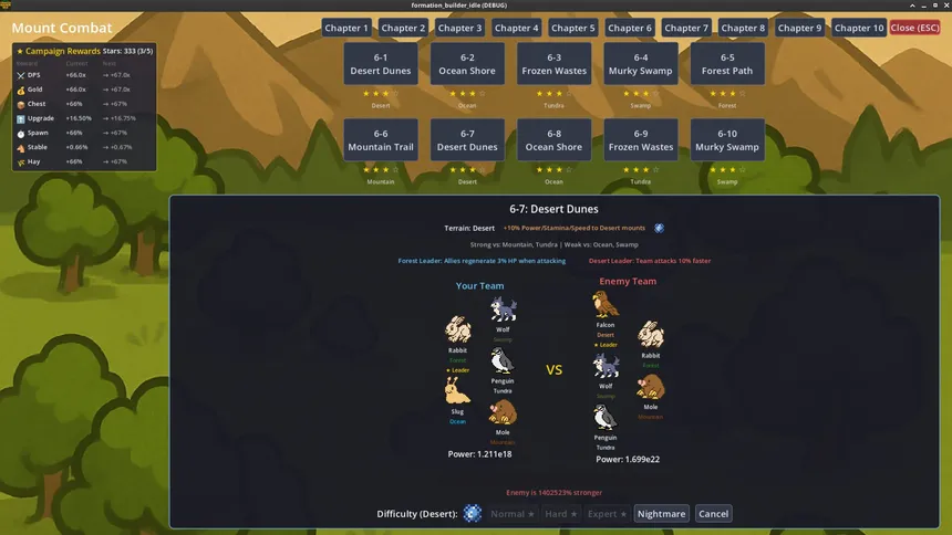 Formation Builder Idle — игра от компании Idle Games LLC, разработанная для платформы PC. Проект совмещает в себе такие жанры и элементы, как rpg и стратегия. Дополнительно игроки выделяют такие особенности игры, как ролевая игра, стратегия, idle-игра и казуальная игра. Игра рассчитана на одиночное прохождение, многопользовательские режимы не предусмотрены.
