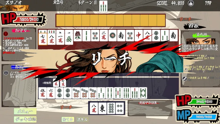 Mahjong meets roguelite loot-building: score big with skills and gear to defeat the gods. Pure damage won’t save you—choose hands that restore HP/MP and master deep mahjong decisions. Equip consumable ofuda and permanent omamori & special tiles; chase rare drops run after run.