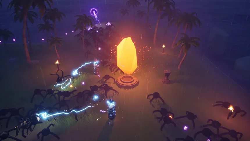 Explore islands, gather resources, unlock upgrades and strengthen your defenses by day. When night falls, survive against relentless waves of shadow creatures.