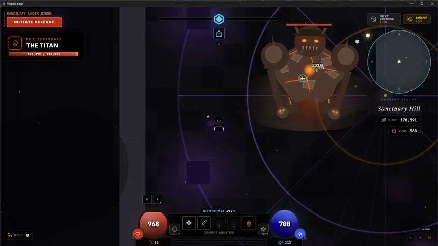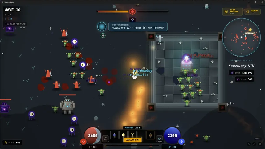 Defend humanity's last light in Vespers Edge, a fast-paced rogue-lite hero siege. Use your hero to harness the power of Constellations to survive relentless enemy waves. When you fall, the Core revives you with a defiant roar: "YOU ARE NOT FINISHED YET." Conquer the Void or vanish into the silence.