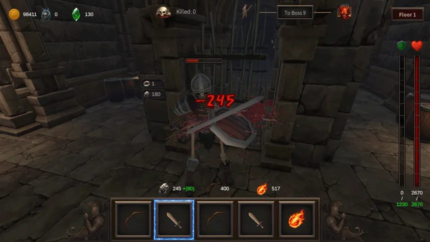 'Slots and Dungeons' is a strategic roguelite game combining 3D dungeon exploration with slot machine mechanics. Defeat lethal bosses on every floor, discover treasure chests, and spin the roulette wheel for rewards. Combine symbols and equipment to reach the end. Luck favors the prepared.