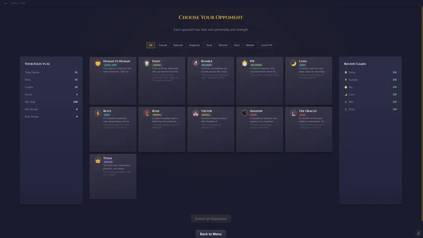 Шахматы во всей своей полноте. От первых ходов до звания гроссмейстера. Тренируйся по системе, сражайся в турнирах и проверь себя против игроков со всего мира. Одна игра для любого уровня.