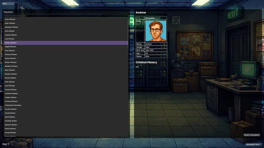 An 80s-style pixel art detective simulator where you interrogate suspects using natural language. AI-powered characters respond dynamically as you uncover clues and solve the crime.