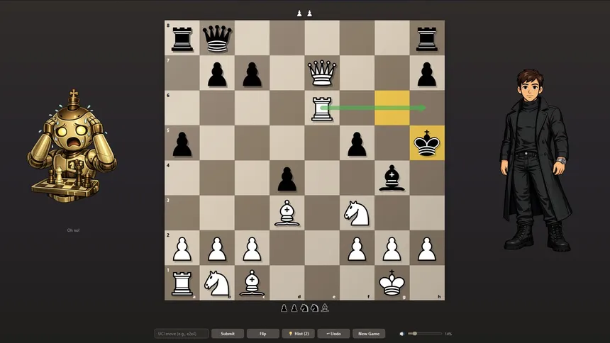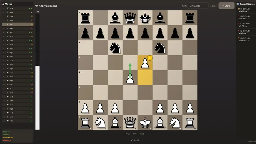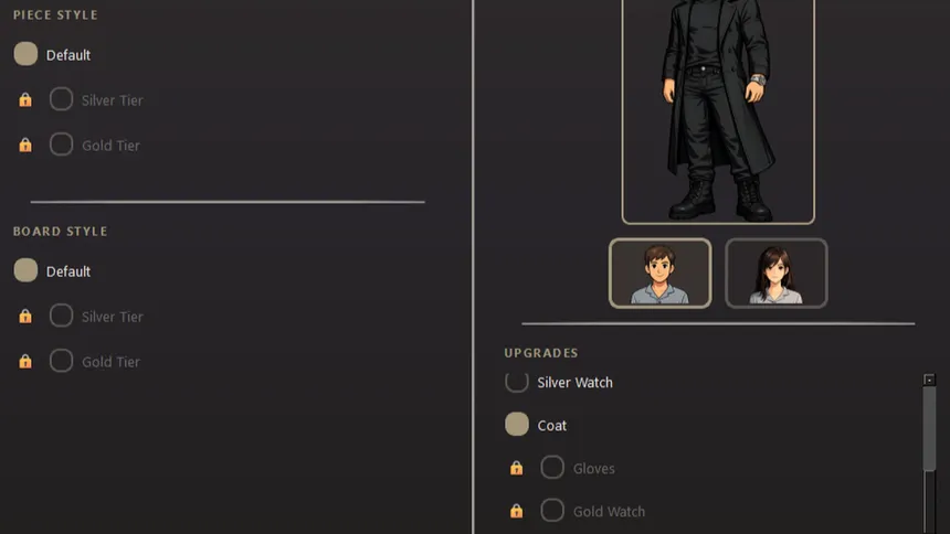A chess game featuring an adaptive AI opponent that scales to your skill level. Analyze your games move-by-move, track your improvement with detailed statistics, and unlock cosmetics for your avatar, board, and pieces as you progress. Original soundtrack by The Teps. No in-app purchases.