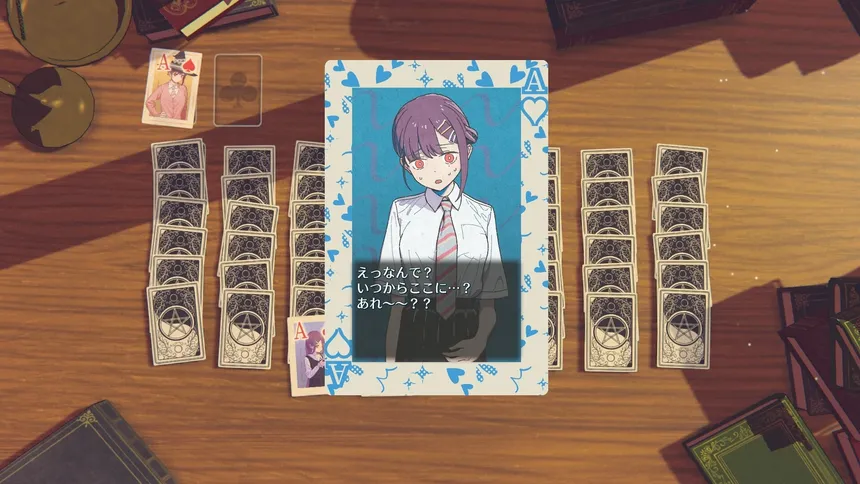 This is a card-based adventure game. Interact with a girl trapped inside a playing card. The girl has lost her memory. Her memories are scattered and hidden within the pictures on the cards... In this card game based on "FreeCell," collect the cards and help the girl regain her memories.