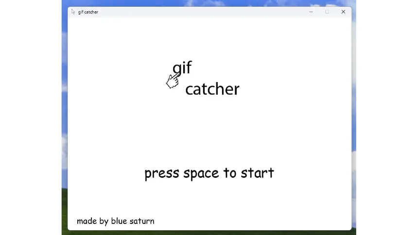 The game is a calm game about catching gifs and I love it. In order to play, press start and move the mouse left to right. Try to catch as many as you can. Every upgrade you buy, The gifs get faster. Get ready for a simple, but very fun game made by the blue saturn team that will make you stressed.