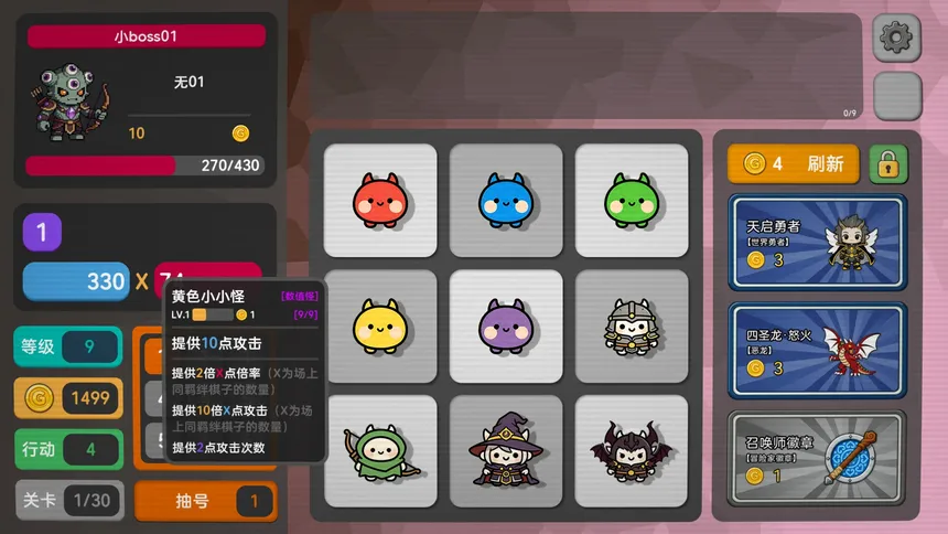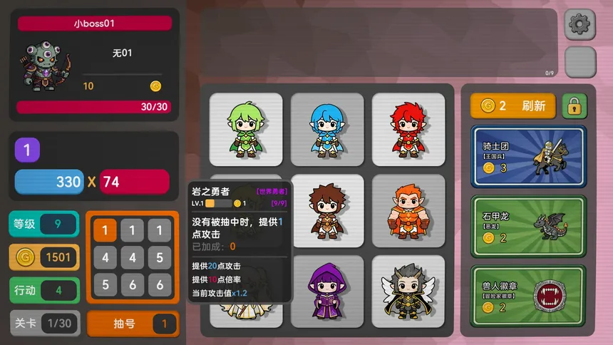 Pick Squad is a strategy game that blends deckbuilding, auto-battler, and roguelike elements. Recruit and upgrade units to build your squad. Draw random numbers to activate matching units’ skills on the board, earn points, and defeat the boss. Test your strategy and arrangement — with a little luck
