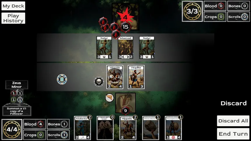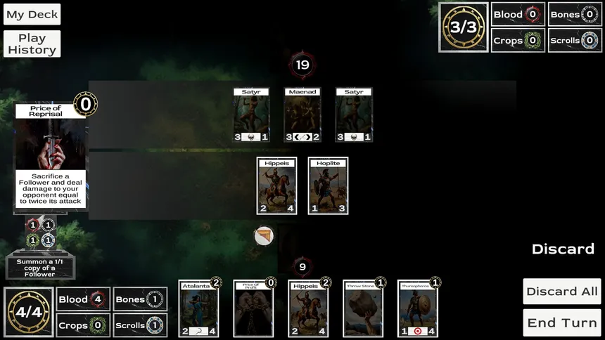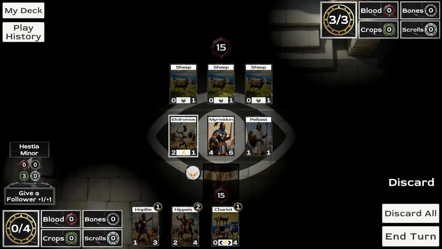 Hecatomb is a mythic deckbuilding roguelike that tests how much you're willing to sacrifice. Every action produces Offerings, which can be relinquished to the Gods in exchange for powerful effects. But which Gods you worship and which you scorn have lasting effects on your journey to the Underworld.