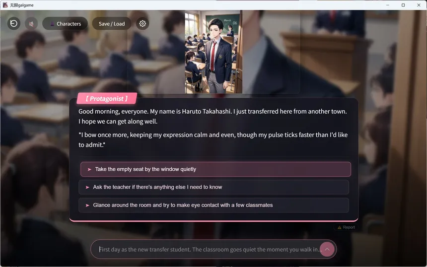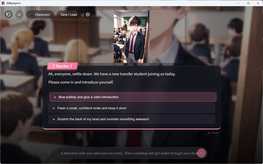 An AI-powered visual novel where every story is written just for you — in real time. Type anything, and watch your unique world unfold.