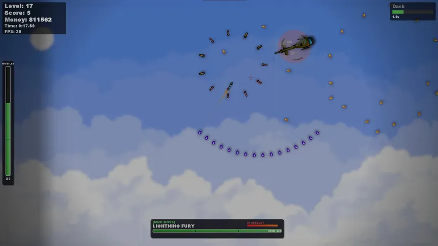 A fast-paced 2D top-down multiplayer shooter where you dodge bullets, upgrade your arsenal, and demolish enemy fighter planes. Earn money from kills to unlock powerful passive, and active upgrades like speed boosts, and enhanced targeting. Every round is a fight for survival — how long can you last?