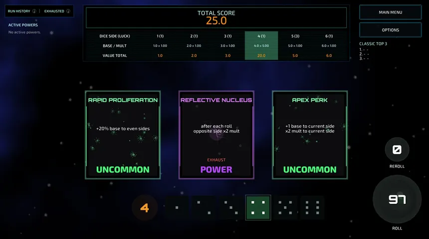 Dice Biology is a roguelike dice-builder where you mutate dice sides, stack base and multiplier synergies, and discover powerful card combinations to push your score to the top of the leaderboard.